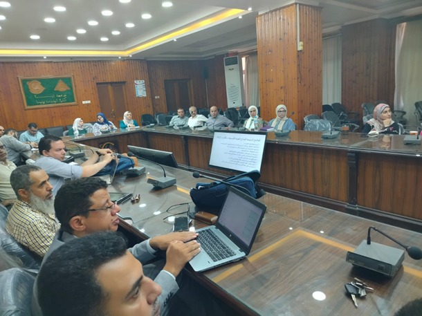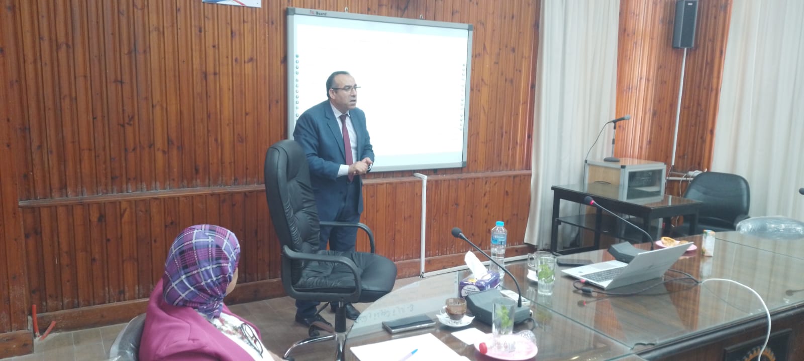 وحاضر بورشة العمل أ.د/ محمد محمدى غانم مدير مركز ضمان الجودة في حضور ا.د/ زينب فيصل عميد الكلية والسادة وكلاء الكلية ا.د/ فهمى عبدالحميد وكيل الكلية لشئون التلعيم والطلاب و ا.د/ ايمن عبدالحميد وكيل الكلية لشئون خدمة المجتمع وتنمية البيئة و ا.د/ اشرف يحيي وكيل الكلية للدراسات العليا والبحوث السادة رؤساء الأقسام ود/محمد السيسي مدير وحدة ضمان الجودة بالكلية وأعضاء هيئة التدريس والهيئة المعاونة.